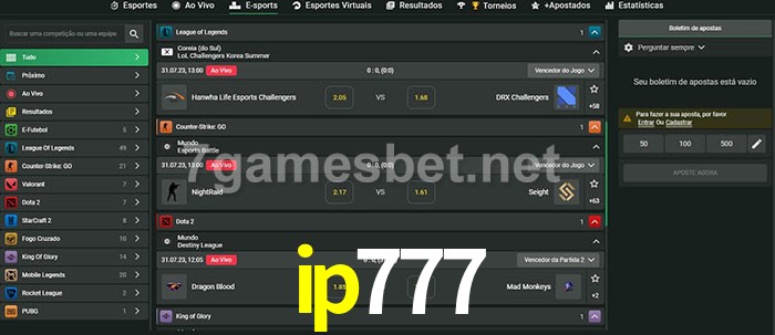 A aposta ip777 oferece aos jogadores a experiência mais conveniente de apostas em eSports!